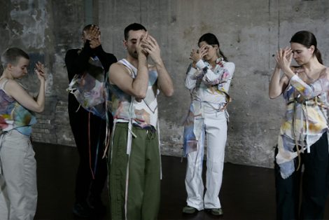 Photographe © Yang Wang / Danseurs : Liam Bourbon Simeonov, Clara Freschel, Mar Gómez Ballester, Paul-David Gonto, Verity Jacobsen, Florette Jager, Yu-Hua Lin, Valen Rivat-Fournier / Costumes : Eleonora Peronetti / Conception graphique : Floriane Ollier / Impression : CCI Marseille / Textes spectacles : Vinciane Laumonier