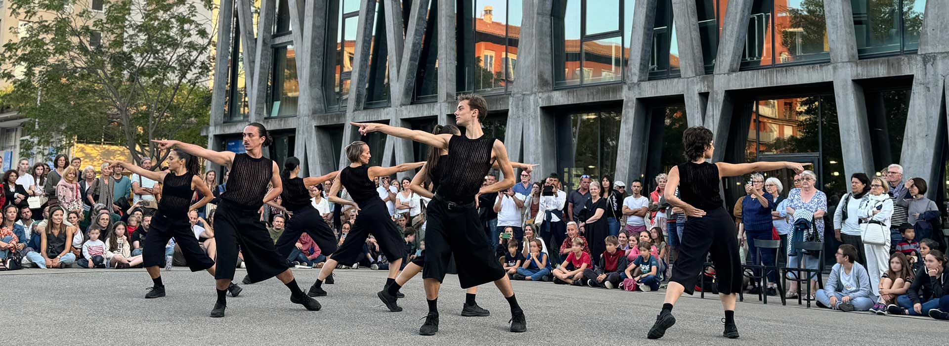The G.U.I.D. shows inhabit the public space: train stations, market squares or school yards become stages for everyone to discover contemporary dance. The group also frequently performs for private events and follows the Ballet Preljocaj from time to time, on French tours or even abroad.