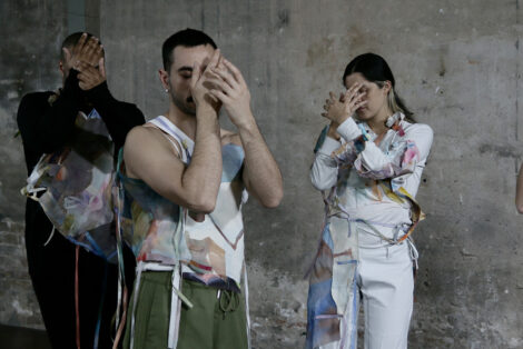 Photographe © Yang Wang / Danseurs : Liam Bourbon Simeonov, Clara Freschel, Mar Gómez Ballester, Paul-David Gonto, Verity Jacobsen, Florette Jager, Yu-Hua Lin, Valen Rivat-Fournier / Costumes : Eleonora Peronetti / Conception graphique : Floriane Ollier / Impression : CCI Marseille / Textes spectacles : Vinciane Laumonier